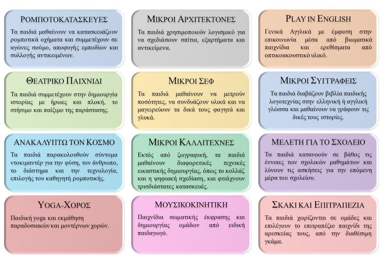 Οι "Μικροί Επιστήμονες" ξεκινήσαμε σήμερα το πρωτοποριακό πρόγραμμα δραστηριοτήτων που απευθύνεται σε παιδιά ηλικίας 5 έως 12 ετών. Το πρόγραμμά μας περιλαμβάνει πολύ ενδιαφέρουσες δραστηριότητες όπως: ρομποτοκατασκευές, θεατρικό παιχνίδι, μελέτη για το σχολείο, μικροί αρχιτέκτονες, μουσικοκινητική, play in english, μικροί σεφ... και πολλά άλλα!!! Τα παιδιά ενθουσιασμένα από τη πρώτη κιόλας μέρα συμμετείχαν σε δημιουργικές δραστηριότητες, οι οποίες γέμισαν ευχάριστα και παραγωγικά το χρόνο τους!