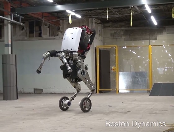 Το Handle αναπτύχθηκε για να συνδυάσει αφενός την ικανότητα που δίνουν τα μηχανικά πόδια σε ανώμαλα εδάφη και αφετέρου την αποδοτικότητα των τροχών. Χρησιμοποιεί αρκετές από τις αρχές που διέπουν την κατασκευή των τετράποδων ρομπότ αλλά είναι λιγότερο σύνθετο. Οι τροχοί δίνουν ταχύτητα και αποτελεσματικότητα σε ομαλό έδαφος ενώ τα πόδια μπορούν να πάνε παντού. Ο Atlas είναι το τελευταίο από μία σειρά προχωρημένων ανθρωποειδών ρομπότ που αναπτύχθηκαν από την Boston Dynamics. Τα συστήματα ελέγχου του Atlas συντονίζουν τις κινήσεις των χεριών, του κορμού και τον ποδιών για να επιτευχθεί πλήρης έλεγχος στις κινήσεις του σώματος επεκτείνοντας έτσι σε μεγάλο βαθμό την απόσταση που μπορεί να καλύψει και τον χώρο εργασίας του. Ο μεγάλος αριθμός αισθητήρων και η στερεοσκοπική όραση, του δίνουν την δυνατότητα να χειρίζεται αντικείμενα και να κινείται σε ανώμαλα εδάφη. Ο Atlas διατηρεί την ισορροπία του όταν σπρώχνεται ή πιέζεται και μπορεί να σηκωθεί ξανά άμα πέσει. Στις 16 Νοεμβρίου του 2017 η Boston Dynamics δημοσίευσε ένα βίντεο στο οποίο ο Atlas εκτελεί διάφορες σύνθετες κινήσεις για ένα τέτοιο ρομπότ με αποκορύφωμα έναν ανάποδο πήδημα (backflip)!