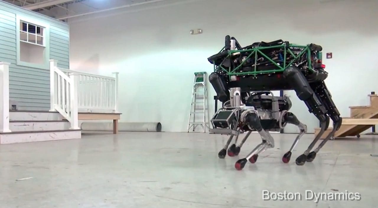 Το Spot είναι ένα τετράποδο ρομπότ που έχει σχεδιαστεί από την Boston Dynamics για δραστηριότητες εσωτερικού και εξωτερικού χώρου. Είναι ηλεκτροκίνητο και υδραυλικά ενεργοποιούμενο. Μπορεί να μεταφέρει 23 kg και λειτουργεί για 45 λεπτά με μία φόρτιση. Το Spot αναπτύχθηκε αξιοποιώντας την εμπειρία που αποκτήθηκε από την ανάπτυξη των προηγούμενων μοντέλων (BigDog, Cheetah κ.α.). Έτσι η Boston Dynamics δημιούργησε ένα τετράποδο ρομπότ σχεδιασμένο για εργασίες εσωτερικού και εξωτερικού χώρου. Το Spot είναι πολύ πιο αθόρυβο από τους προκατόχους του. Το SpotMini είναι τετράποδο και μπορεί να κινηθεί άνετα σε ένα σπίτι ή ένα γραφείο. Ζυγίζει 25 kg (ή 30 kg αν προστεθεί και ο βραχίονας). Είναι απόλυτα ηλεκτρικό και αυτόνομο μέχρι και για 90 λεπτά ανάλογα με τις εργασίες που πραγματοποιεί. Αποτελεί το πλέον «αθόρυβο» ρομπότ που έχει δημιουργήσει η Boston Dynamics. Το Spot Mini έχει κληρονομήσει όλα τα χαρακτηριστικά του «προγόνου» του Spot και έχει ακόμα την δυνατότητα να πιάνει και να μεταχειρίζεται αντικείμενα με τον βραχίονα του και τους ενισχυμένους αισθητήρες αντίληψης που έχει.